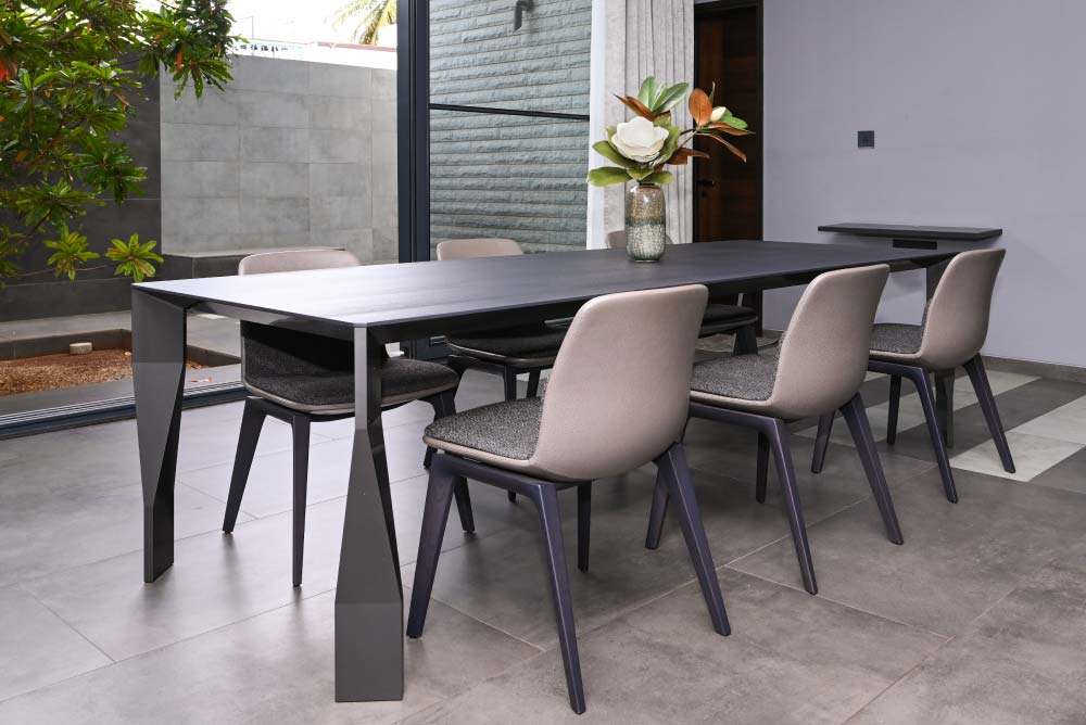 For their stunning home, the Shuklas chose five exceptional pieces from Simply Sofas. The Paloma leather sofa by NICOLETTIHOME offers a sophisticated touch, while the Fly velvet sofa by CALIA ITALIA stands out with its rich rust colour. The MyApple swivel sofa by FAMA adds a modern flair, and the A0469 leather and fabric armchair by BECKER combines style with practicality. The Zeus sofa bed by FAMA provides both comfort and versatility.